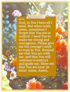 Precious Jesus, when I feel out of control, remind me that you are near and always ready to help me. Bring me to a path of understanding and a huge dose of your wisdom so I can continue to go forward in my life with knowing the hope and joy you have for me. AMEN.