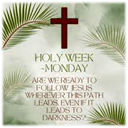 A Time to Pray… Jesus, I set aside this Holy Week-this Holy Monday, to search for what needs to be surrendered. Examine my heart, test me, and know my anxious thoughts. Point out anything ugly in my life that is hindering my deep relationship with you. I can’t thank you enough for the brutal sacrifice that you made to allow me to be close to you. I don’t want anything to be inside my heart, mind, or actions that prohibit you from using me fully to share your truth and your love. In your holy name I ask, AMEN.