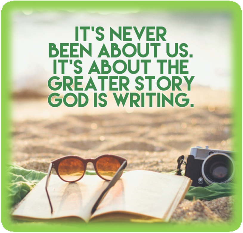 How about you and me? Does God have a story to tell through our lives as well? He does indeed in Psalm 71:15-16 [Voice] “I will bear witness to your merciful acts; throughout the day I will speak of all the ways you deliver, although, I admit, I do not know the entirety of either. I will come with stories of your great acts, my Lord, the Eternal. I will remind them of your justice, only yours.”