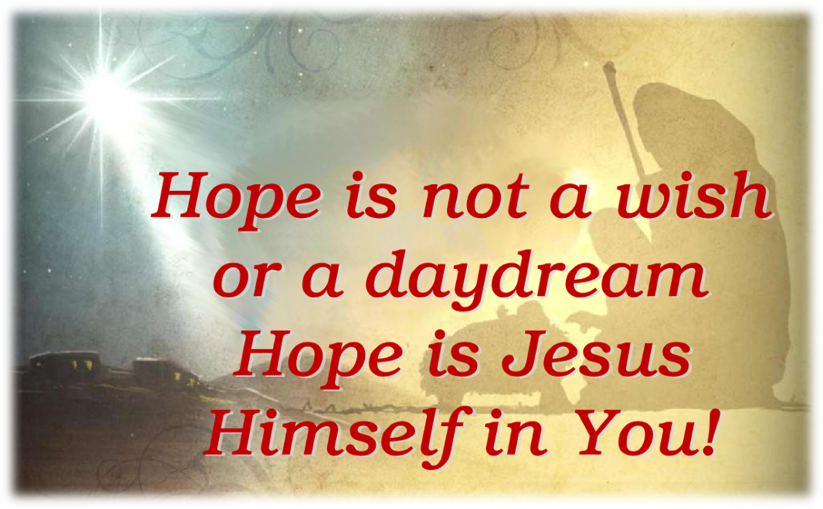 Wishing Is NOT Hoping! … Hello Hump Day readers. As we countdown to Christmas, listening to the songs of the season and those assuring words from Jesus: peace, love, joy, and hope, I wonder if we look at each one of these words and ask ourselves “what does that mean to me?”